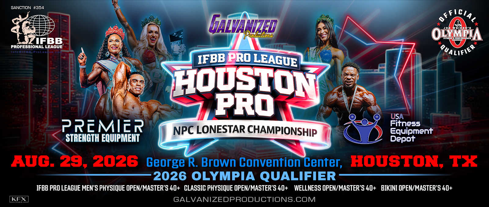 Classic Physique Open & 40+ Men’s Physique Open & 40+ Figure Open & 40+ Bikini Open & 40+ Wellness Open & 40+